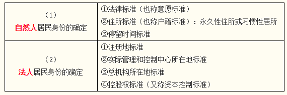 (二)約束稅收管轄權(quán)的國際慣例 | 1.約束居民管轄權(quán)的國際慣例 (1)自然人居民身份的確定 (2)法人居民身份的確定 |