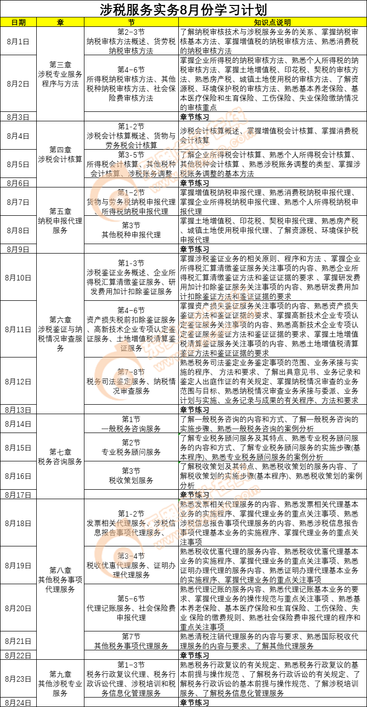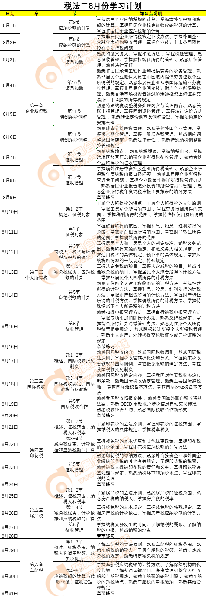 收藏!2021年稅務(wù)師《稅法二》8月份每日學(xué)習(xí)計劃