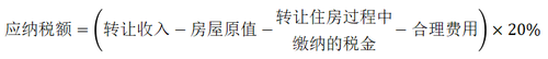 應(yīng)納稅額=(每次收入額-財產(chǎn)原值-合理費用)×20%