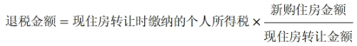 退稅金額=現(xiàn)住房轉(zhuǎn)讓時繳納的個人所得稅