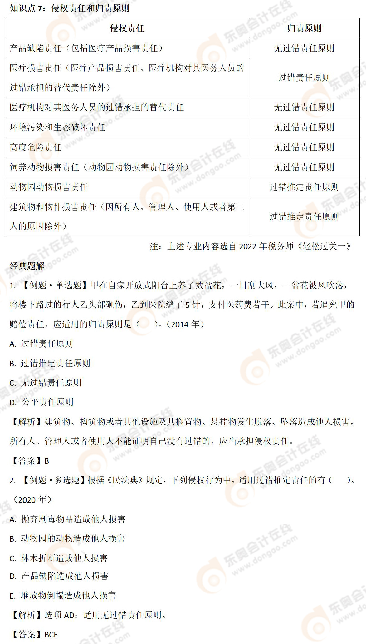 2022稅務(wù)師《涉稅服務(wù)相關(guān)法律》易錯(cuò)易混知識(shí):侵權(quán)責(zé)任和歸責(zé)原則