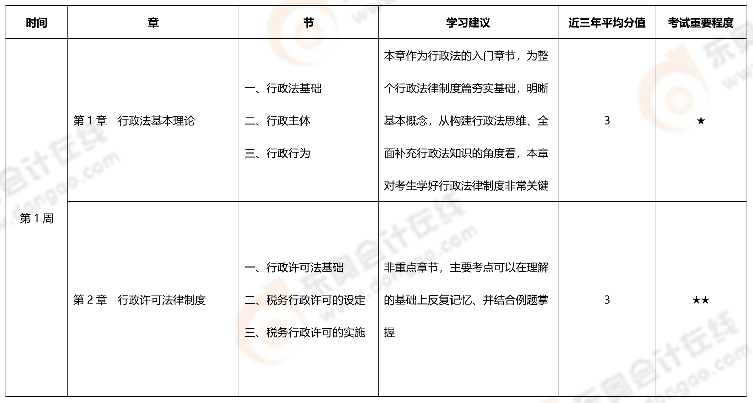 涉稅服務(wù)相關(guān)法律基礎(chǔ)階段學(xué)習(xí)計劃