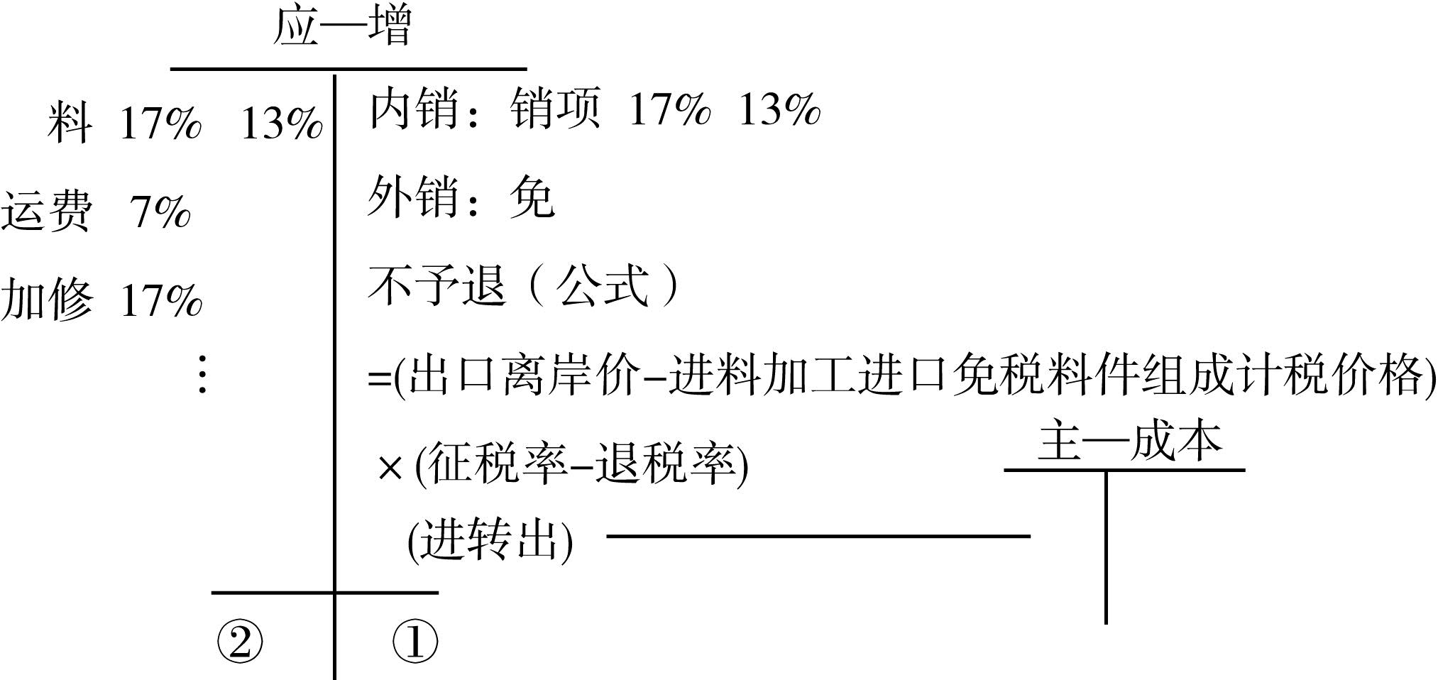 或者=(出口貨物離岸價×外匯牌價-進(jìn)口免稅料件組成計稅價格)×(征稅率-退稅率)