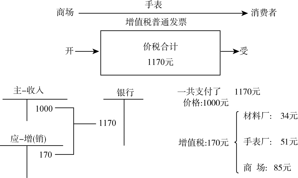 由于購買手表時,已經(jīng)支付了廠家85元的增值稅,要抵償?shù)簦要交85元(170-85)的增值稅,即收了消費者170元的增值稅補償上一環(huán)節(jié)支付的增值稅85元后,將剩余的85元交給稅務機關。