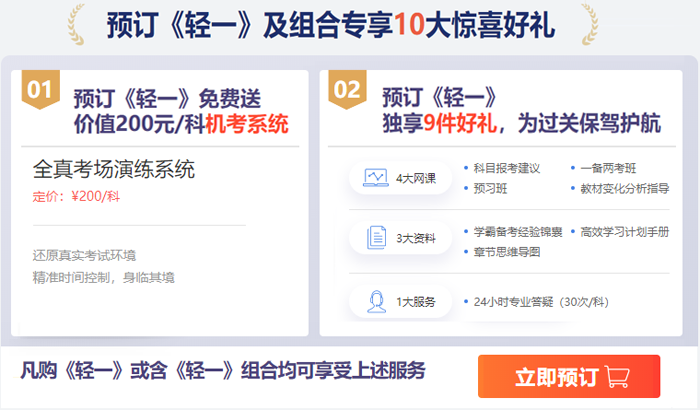 【特點(diǎn)】本書與《輕一》匹配度極高,兩本搭配,卓效提分。歷年通關(guān)學(xué)員盛贊:“ 有《輕一》《輕二》兩書在手,認(rèn)真做,一遍過!”