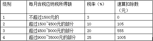 附:工資薪金所得個(gè)人所得稅稅率表(部分)