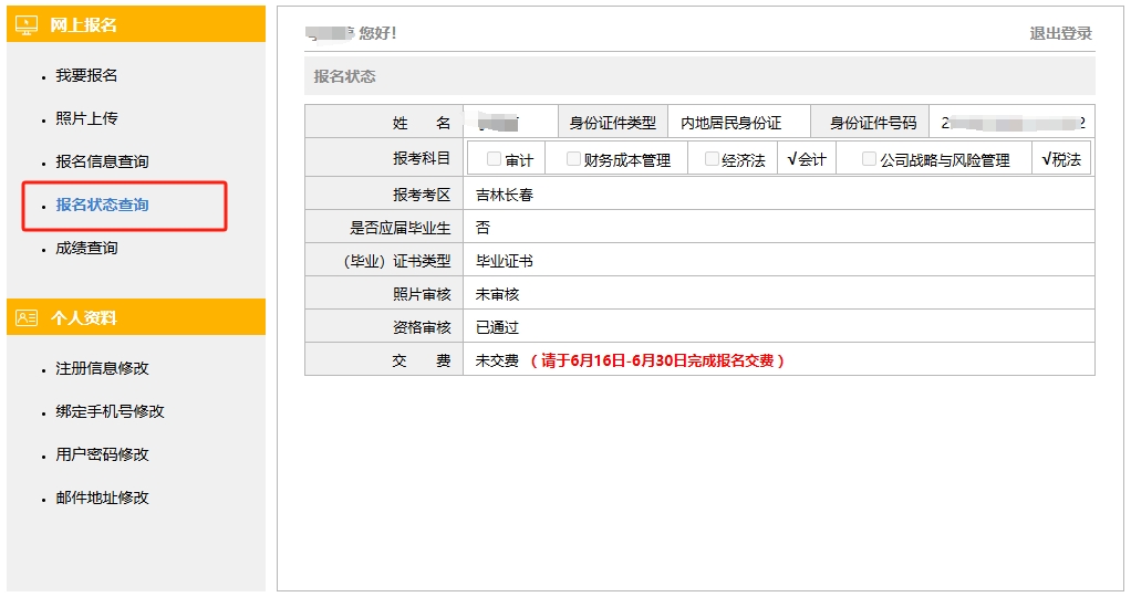 注冊(cè)會(huì)計(jì)師考試報(bào)名狀態(tài)查詢流程