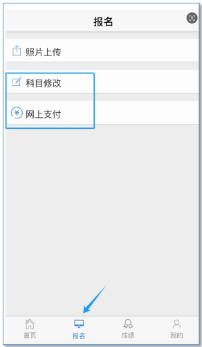 步驟五:點擊菜單“報名”選項步驟六:修改報考科目