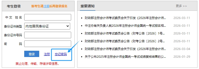 注會網(wǎng)報系統(tǒng)密碼忘記如何找回?26年考生快收藏!