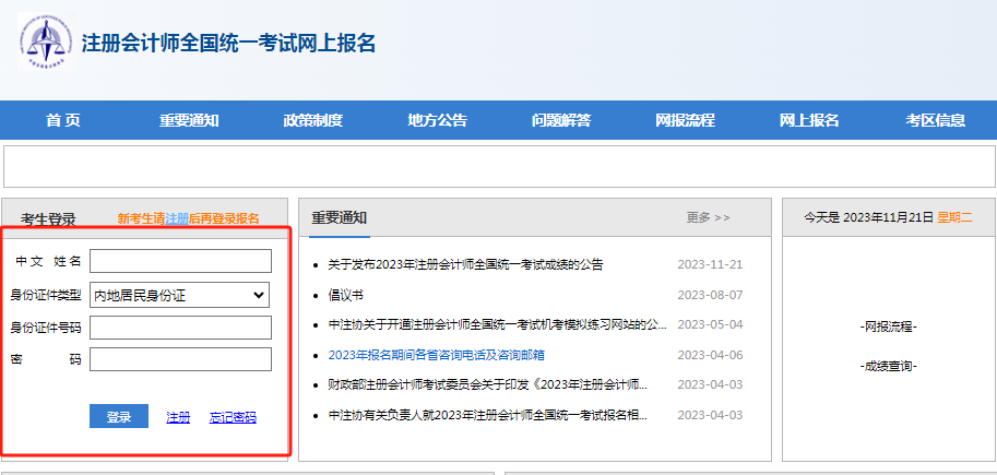 步驟一:進入“注冊會計師全國統(tǒng)一考試網(wǎng)上報名”系統(tǒng),輸入個人信息登錄。