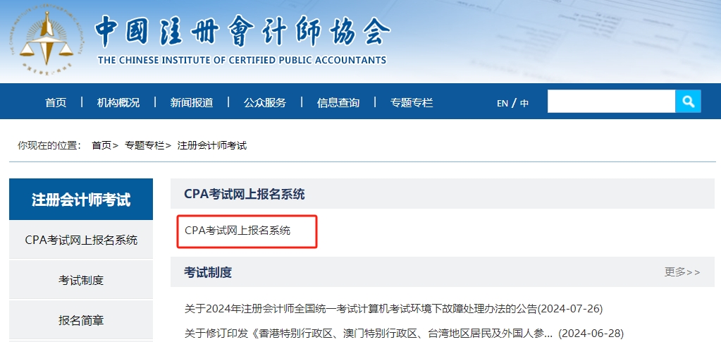 步驟2:進(jìn)入“CPA考試網(wǎng)上報(bào)名系統(tǒng)”。