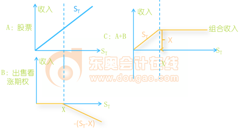 股票加空頭看漲期權(quán)組合,是指購買1份股票,同時(shí)出售該股票1份看漲期權(quán)。
