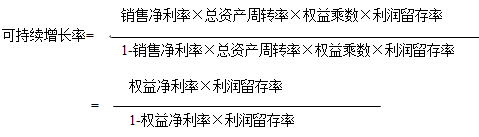 =銷(xiāo)售凈利率×總資產(chǎn)周轉(zhuǎn)率×期初權(quán)益期末總資產(chǎn)乘數(shù)×收益留存率