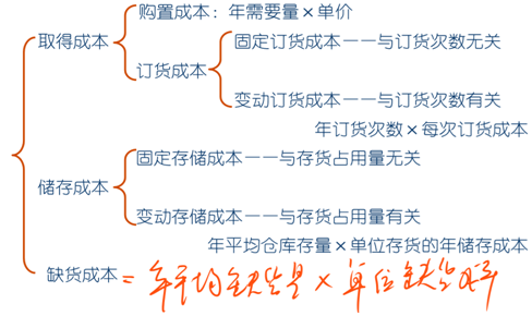 與儲備存貨有關(guān)的成本,包括取得成本、儲存成本、缺貨成本。