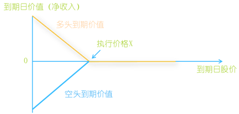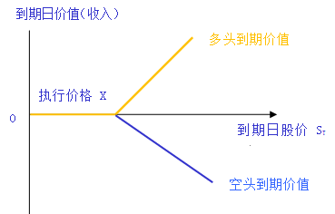 、谌羰袃r(jià)小于執(zhí)行價(jià)格,多頭與空頭價(jià)值:均為0。