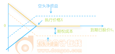 空頭:凈收益有限(最大值為期權(quán)價(jià)格),凈損失不確定;最大值為執(zhí)行價(jià)格-期權(quán)價(jià)格。