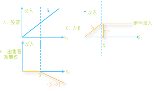 股票加空頭看漲期權(quán)組合,是指購買1份股票,同時出售該股票1份看漲期權(quán)。