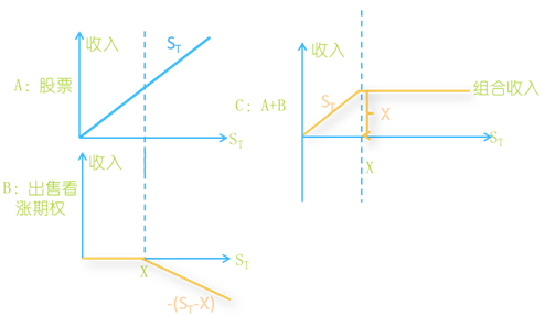 股票加空頭看漲期權(quán)組合,是指購買1份股票,同時出售該股票1份看漲期權(quán)。