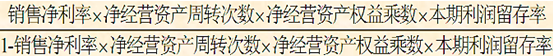 =銷售凈利率×凈經(jīng)營資產(chǎn)周轉(zhuǎn)次數(shù)×期初權(quán)益期末凈經(jīng)營資產(chǎn)乘數(shù)×本期利潤留存率