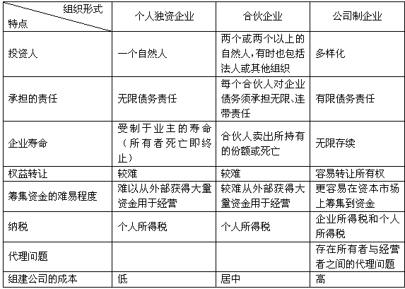 典型的企業(yè)組織形式有三種:個人獨資企業(yè)、合伙企業(yè)以及公司制企業(yè)。