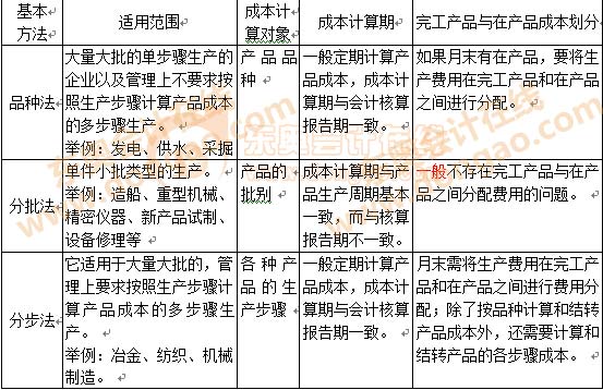 按成本計算對象的不同,成本計算的基本方法分為品種法、分批法和分步法三種。