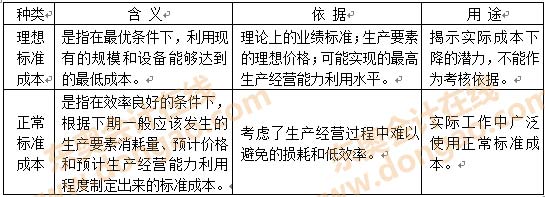 【知識(shí)點(diǎn)】:標(biāo)準(zhǔn)成本的分類