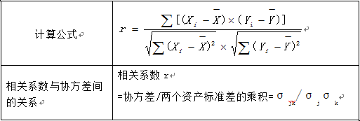 【提示2】相關(guān)系數(shù)的正負(fù)與協(xié)方差的正負(fù)相同。相關(guān)系數(shù)為正值,表示兩種資產(chǎn)收益率呈同方向變化,組合抵消的風(fēng)險較少;負(fù)值則意味著反方向變化,抵消的風(fēng)險較多。