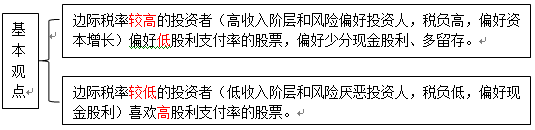 【提示】客戶效應(yīng)理論是對(duì)稅差效應(yīng)理論的進(jìn)一步擴(kuò)展,研究處于不同稅收等級(jí)的投資者對(duì)待股利分配態(tài)度的差異。