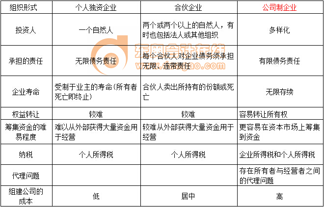 2015《財務(wù)成本管理》預(yù)習考點:企業(yè)的組織形式