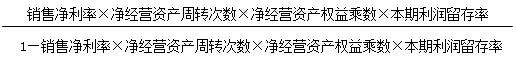 =銷售凈利率×凈經(jīng)營資產(chǎn)周轉次數(shù)×期初權益期末凈經(jīng)營資產(chǎn)乘數(shù)×本期利潤留存率