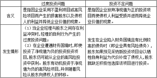 債務(wù)的代理成本既可以表現(xiàn)為因過度投資使經(jīng)理和股東受益而發(fā)生債權(quán)人價(jià)值向股東轉(zhuǎn)移,也可以表現(xiàn)為因投資不足問題而發(fā)生股東為避免價(jià)值損失而放棄給債權(quán)人帶來的價(jià)值增值。