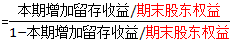 =本期增加留存收益/(期末股東權(quán)益-本期增加留存收益)