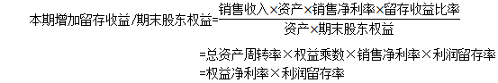 可持續(xù)增長率=銷售凈利率×總資產(chǎn)周轉(zhuǎn)率×期初權(quán)益期末總資產(chǎn)乘數(shù)×收益留存率