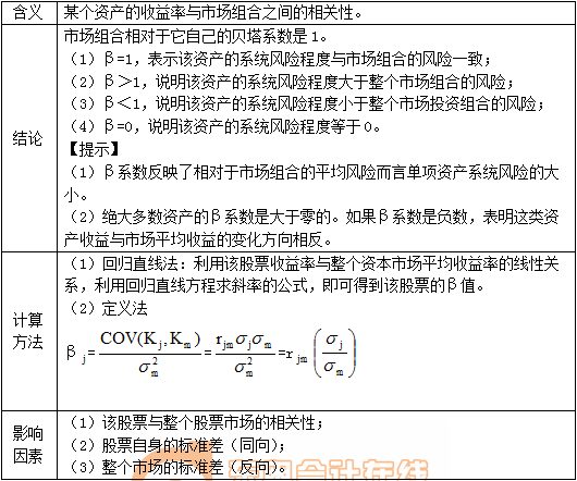 【提示】資產(chǎn)組合不能抵消系統(tǒng)風險,所以,資產(chǎn)組合的β系數(shù)是單項資產(chǎn)β系數(shù)的加權平均數(shù)。