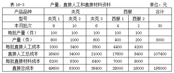 該公司本月每種款式的產(chǎn)量和直接成本如表16-3所示。