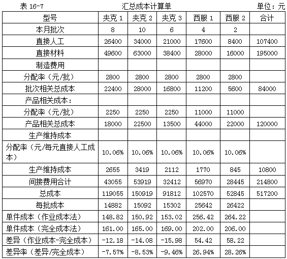 采用傳統(tǒng)的完全成本法時,制造費用使用統(tǒng)一的分配率如表16-5所示。