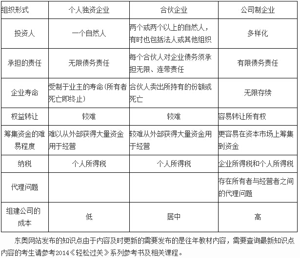 2015《財務(wù)成本管理》選擇題易考點(diǎn):企業(yè)的組織形式