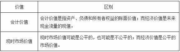 (二)會(huì)計(jì)價(jià)值、現(xiàn)時(shí)市場(chǎng)價(jià)值與經(jīng)濟(jì)價(jià)值的區(qū)別