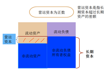 營運(yùn)資本 =流動資產(chǎn)-流動負(fù)債 =長期資本-長期資產(chǎn) |