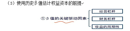 如果公司在經(jīng)營杠桿、財(cái)務(wù)杠桿和收益的周期性這三方面沒有顯著改變,則可以用歷史的β值估計(jì)權(quán)益成本。