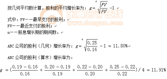 【提示】幾何增長率適合投資者在整個(gè)期間長期持有股票的情況,而算術(shù)平均數(shù)適合在某一段時(shí)間持有股票的情況。由于股利折現(xiàn)模型的增長率,需要長期的平均增長率,幾何增長率更符合邏輯。
