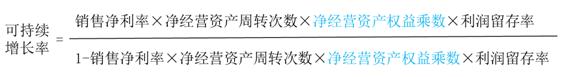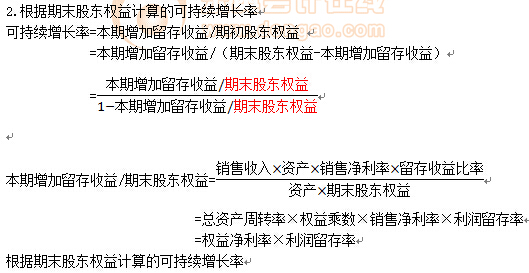 可持續(xù)增長率=銷售凈利率×總資產(chǎn)周轉(zhuǎn)率×期初權(quán)益期末總資產(chǎn)乘數(shù)×收益留存率