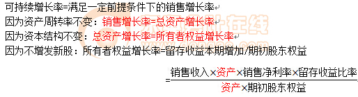 可持續(xù)增長率=(銷售凈利率×總資產(chǎn)周轉(zhuǎn)率×權(quán)益乘數(shù)×利潤留存率)/(1-銷售凈利率×總資產(chǎn)周轉(zhuǎn)率×權(quán)益乘數(shù)×利潤留存率)=(權(quán)益凈利率×利潤留存率)/(1-權(quán)益凈利率×利潤留存率)