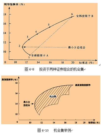 (1)兩種投資組合的投資機會集曲線描述不同投資比例組合的風(fēng)險和報酬的關(guān)系;