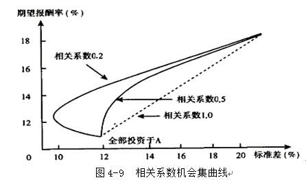 證券報酬率的相關(guān)系數(shù)越小,機會集曲線就越彎曲,風(fēng)險分散化效應(yīng)也就越強。 |
