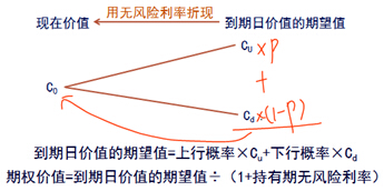 到期日價(jià)值的期望值=上行概率×Cu+下行概率×Cd