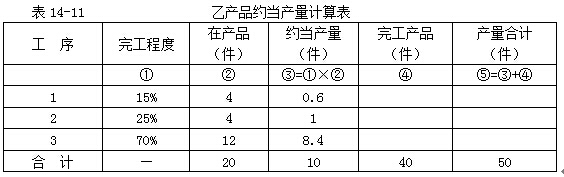 將各項(xiàng)費(fèi)用分配結(jié)果記入501批乙產(chǎn)品成本計(jì)算單(表14-10)即可計(jì)算出乙產(chǎn)品的產(chǎn)成品成本和月末在產(chǎn)品成本。