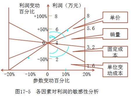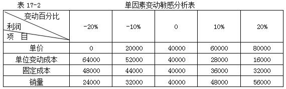 下面仍以例17-5的數(shù)字為基礎(chǔ),進(jìn)行敏感程度的分析: