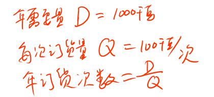 變動訂貨成本=年訂貨次數(shù)×每次訂貨成本=D/Q×K