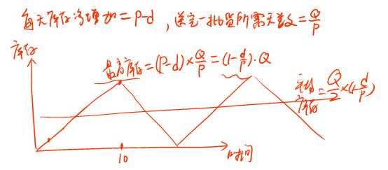 設(shè)每批訂貨數(shù)為Q,每日送貨量為P,每日耗用量d